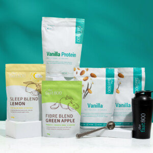 If you are using GLP-1 medications, you might not be getting adequate amounts of protein and fibre, which are vital to support muscle retention and metabolic health during weight loss. That’s where The Fast 800 GLP-1 Ultimate Support Bundle can help.